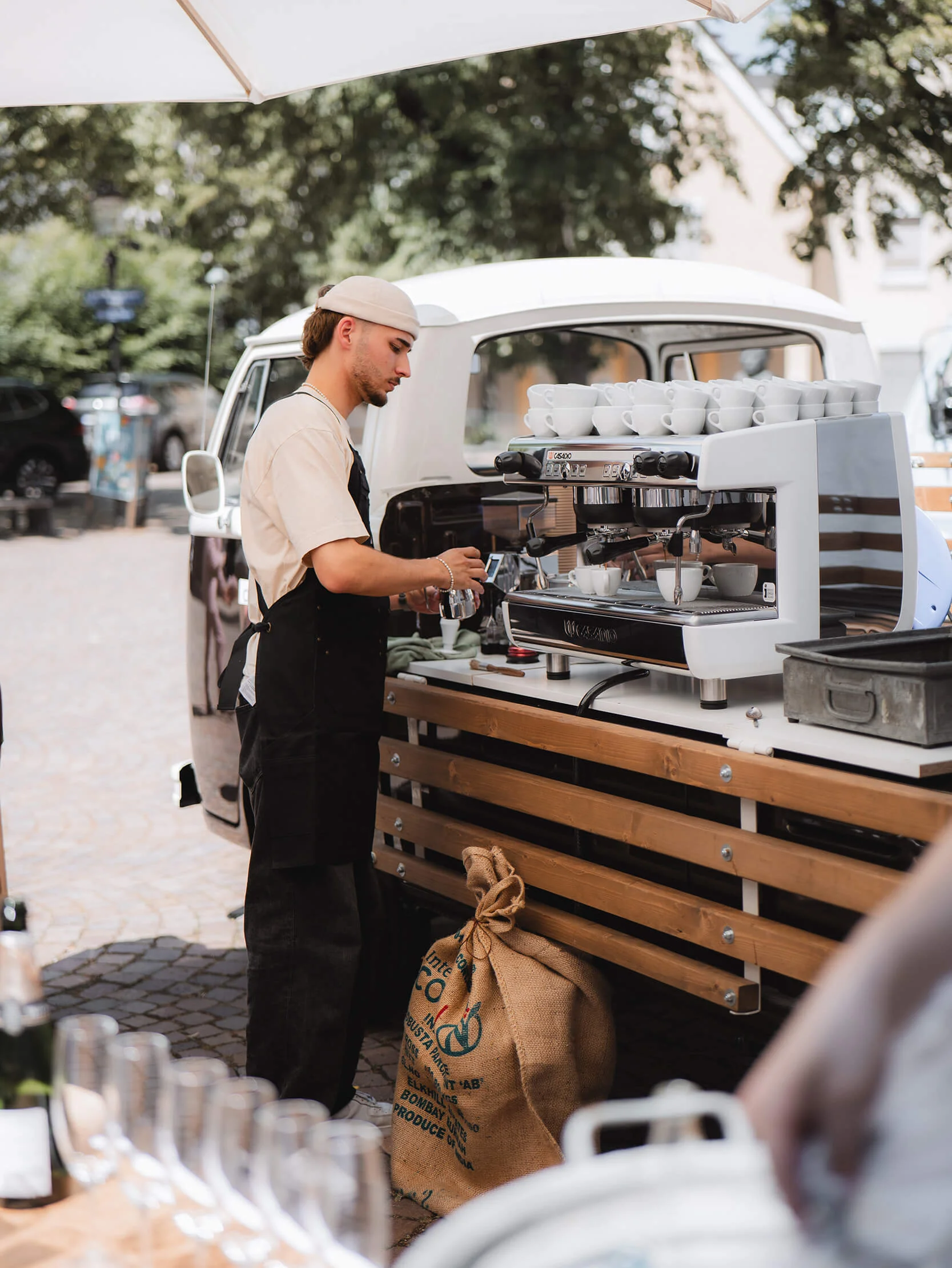 Verleiht eurem Firmenevent mit dem Kaffeemobil von crema mobile einen Hauch von Raffinesse. Unsere breite Palette an Kaffeevariationen lässt eure Mitarbeiter und Geschäftspartner die Veranstaltung in vollen Zügen genießen. Ganz egal, ob es sich um eine Firmenfeier, eine Konferenz oder ein Networking-Event handelt, unsere Baristas sorgen für die nötige Dosis an Koffein und schaffen Raum für Kommunikation.