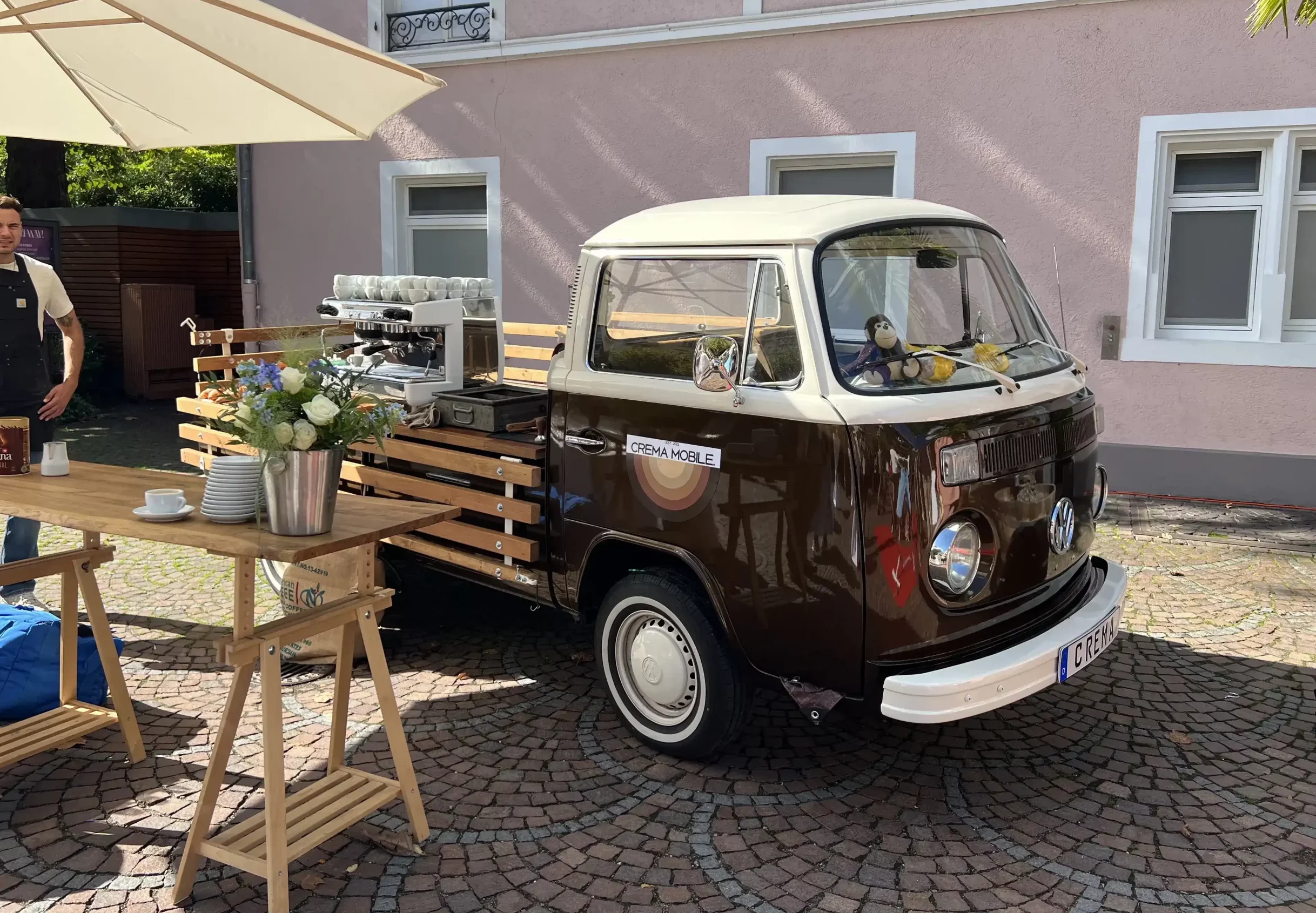 Wir haben das Crema-Mobile für ein Firmenevent gebucht, um unsere Gäste mit feinstem Kaffee zu bewirten. Der Service war einfach spitze und der Oldtimer kam sehr gut bei unseren Gästen an. Rundum war es wirklich ein Highlight das Crema-Mobile auf unserem Gelände stehen zu haben. Wir haben durchweg von allen Gästen ein tolles Feedback erhalten und viele meinten sogar: „Das war der Beste Kaffee, den ich je getrunken habe.“ Ein großes Lob an euer Team und euren Service. Wir sehen uns bestimmt wieder!